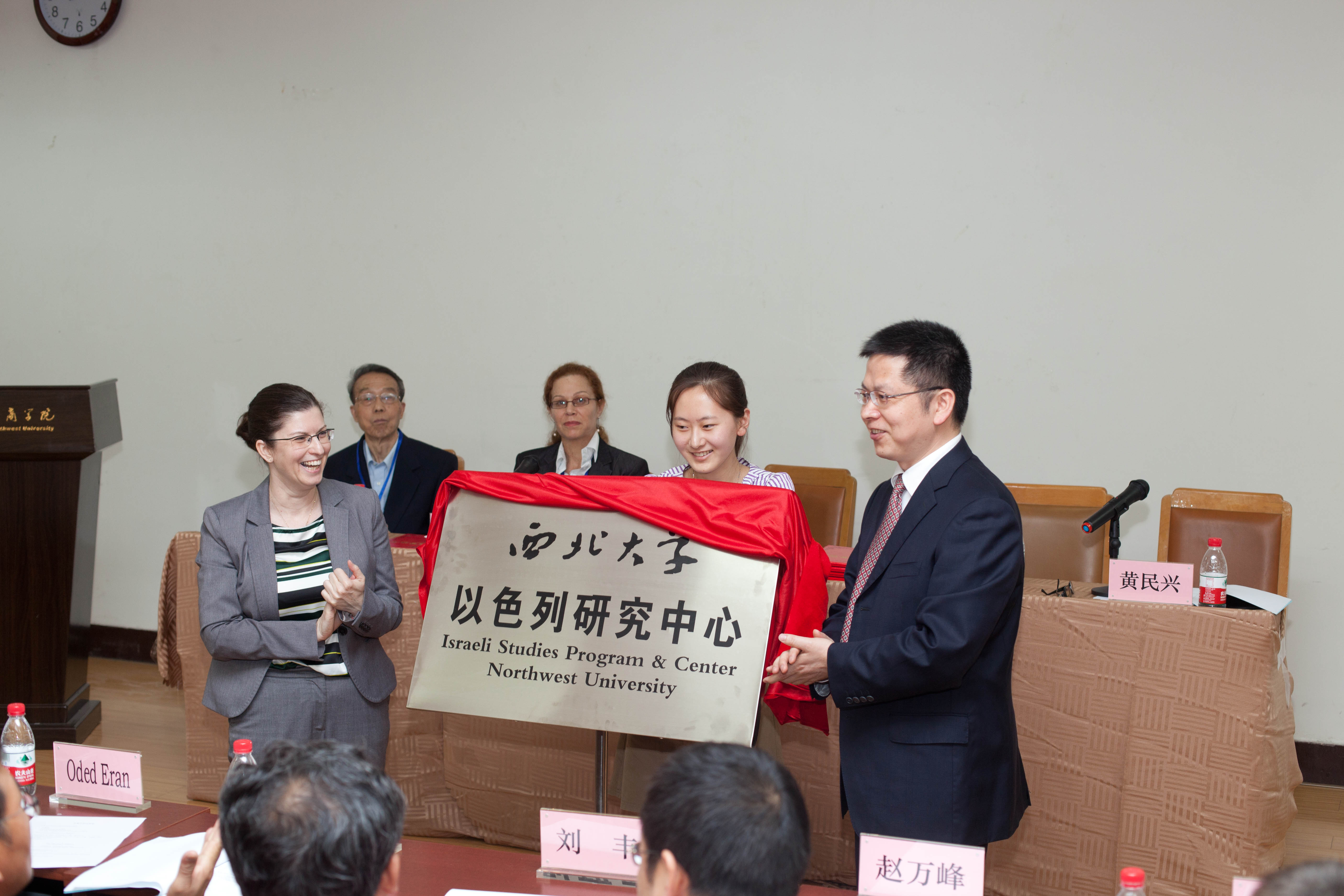 随后,方光华校长和Dana Benvenisti女士共同为西北大学以色列研究中心揭牌。西北大学以色列研究中心挂靠我校776net必赢官网,主要由我校776net必赢官网和中东所相关科研人员组成。聘请776net必赢官网副院长王新刚教授为中心主任,中东所所长黄民兴教授和776net必赢官网雷钰副教授为副主任。中心联合中以学术交流促进会定期举行学术交流活动,支持我校师生加强与以色列相关高校的学术互访,定期在我校举办有关犹太史和以色列研究的征文比赛等。