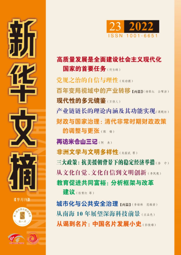 陈峰教授文章被《新华文摘》全文转载